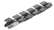 RS 롤러 체인(전동용) 타입의 플레이트에 어태치먼트를 부착한 반송용 체인입니다.